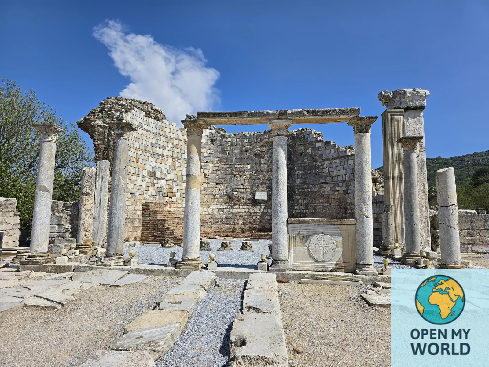 - Сохранились фундамент, колонны и часть стен, позволяющие представить масштаб раннехристианского храма.