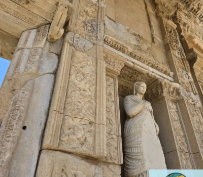 - Фасад с колоннами и статуями — один из самых узнаваемых символов Эфеса.