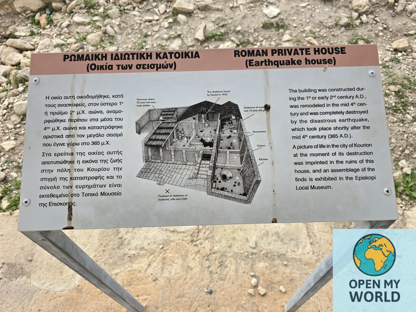 В 365 году н.э. мощное землетрясение разрушило значительную часть Куриона. Один из жилых домов обрушился, погребая под собой жителей и их имущество. При раскопках археологи обнаружили скелеты, предметы быта и мебель, сохранившиеся в том виде, в каком они оказались во время катастрофы.